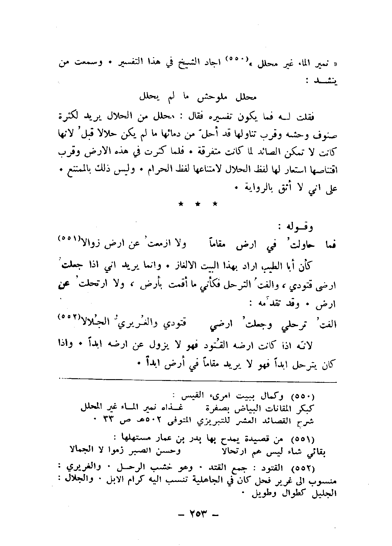 (نمير الماء غير محلل) أجاد الشيخ في هذا التفسير. وسمعت من ينشد: