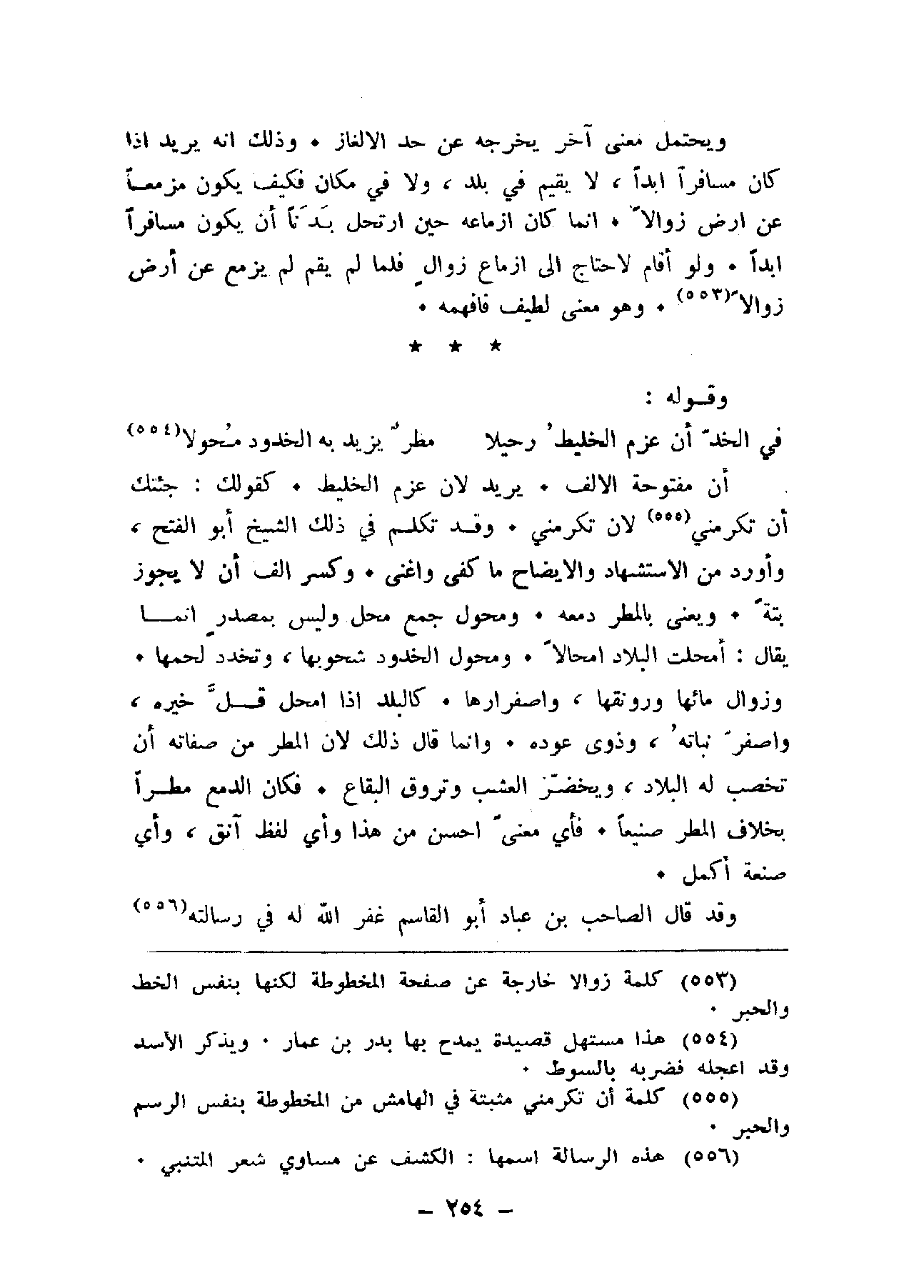 وقد قال الصاحب بن عباد أبو القاسم غفر الله له في رسالته