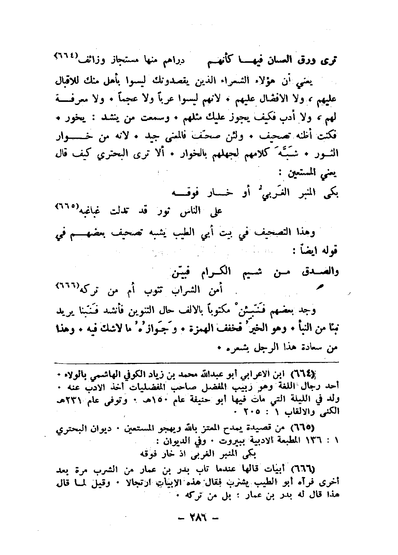 يعني إن هؤلاء الشعراء الذين يقصدونك ليسوا بأهل منك للإقبال عليهم، ولا الأفضال عليهم. لأنهم ليسوا عرباً ولا عجماً، ولا معرفة لهم، ولا أدب فكيف يجوز عليك مثلهم. وسمعت من سنشد: يخور. فكنت أظنه تصحيف. ولئن صحف فالمعنى جيد. لأنه من خوار الثور. شبه كلامهم لجهلهم بالخوار. ألا ترى البحتري كيف قال يعني المستعين: