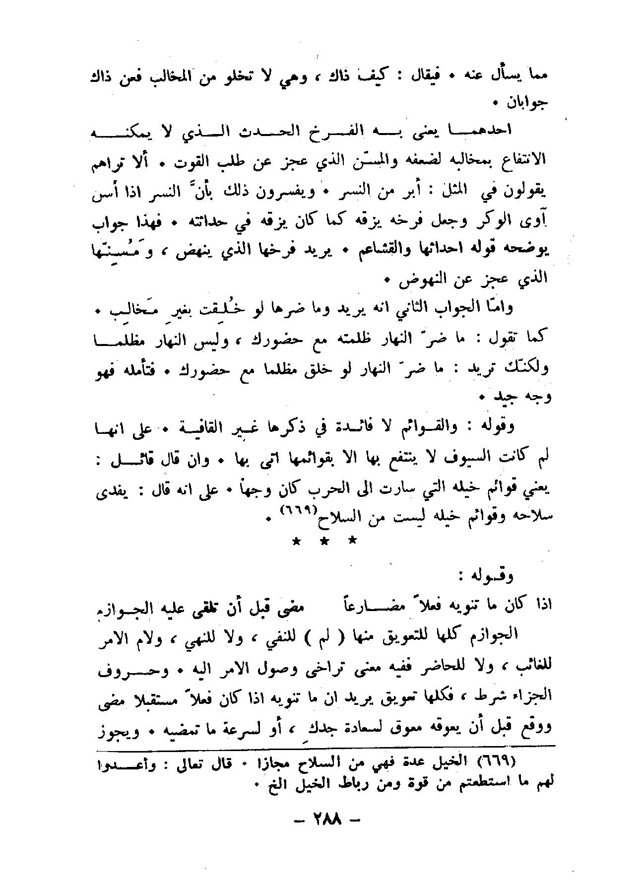 الجوازم كلها للتعويق منها (لم) للنفي، ولا للنهي، ولام الأمر للغائب، ولا للحاضر ففيه معنى تراخي وصول الأمر إليه. وحروف الجزاء شرط، فكلها تعويق يريد أن ما تنويه إذا كان فعلا مستقبلا مضى ووقع قبل ان يعوقه معوق لسعادة جدك، أو لسرعة ما تمضيه. ويجوز