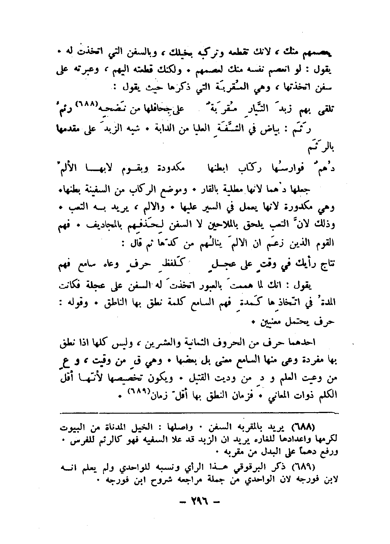 جعلها دهما لأنها مطلية بالقار. وموضع الركاب من السفينة بطنها. وهي مكدورة لأنها يعمل في السير عليها. والألم، يريد به التعب. وذلك لان التعب يلحق بالملاحين لا السفن لحذفهم بالمجاديف. فهم القوم الذين زعم أن الألم ينالهم من كدها ثم قال: