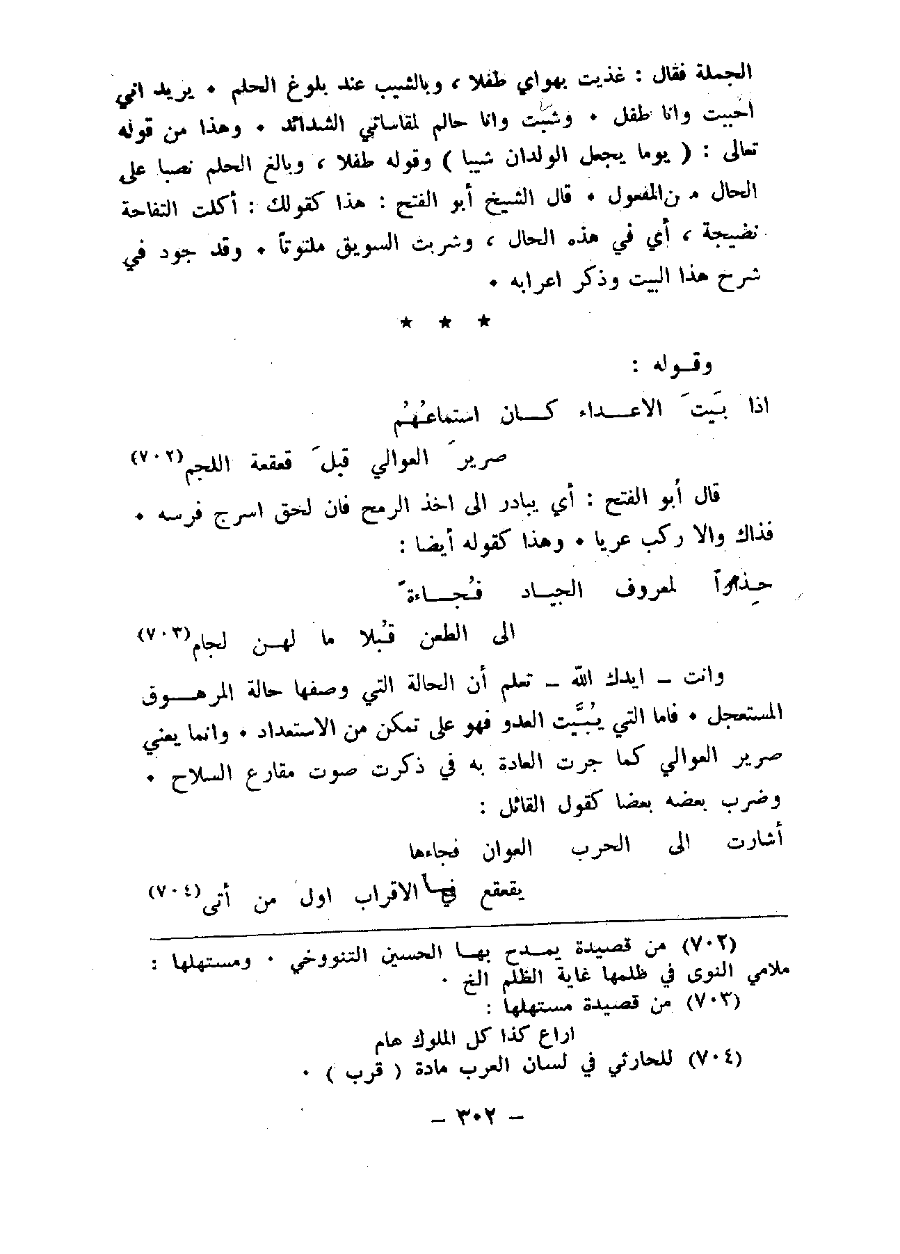 وأنت - أيدك الله - تعلم أن الحالة التي وصفها حالة المرهوق المستعجل. فأما التي يبيت العدو فهو على تمكن من الاستعداد. وإنما يعني صرير العوالي كما جرت العادة به في ذكرت صوت مقارع السلاح. وضرب بعضه بعضاً كقول