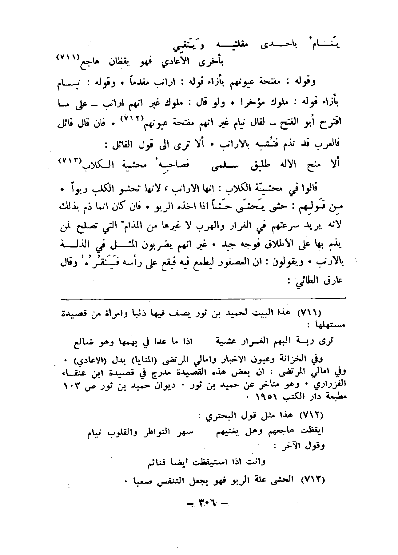 وقوله: مفتحة عيونهم بازاء قوله: أرانب مقدماً. وقوله: نيام بازاء قوله: ملوك مؤخراً. ولو قال: ملوك غير أنهم أرانب - على ما اقترح أبو الفتح - لقال نيام غير انهم مفتحة عيونهم. فان قال قائل فالعرب قد تذم فتشبه بالأرانب. ألا ترى إلى قول القائل: