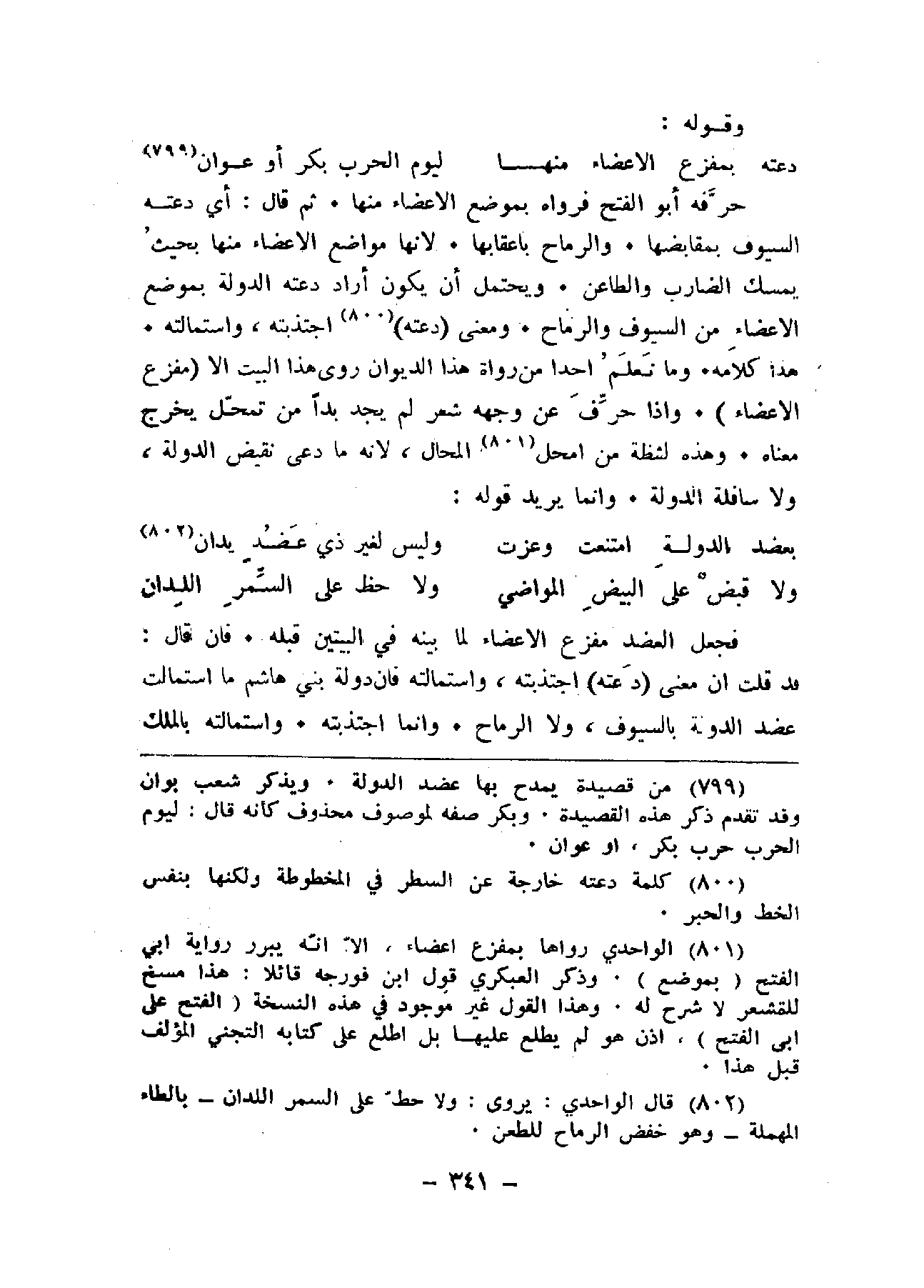 فجعل العضد مفزع الأعضاء لما بينه في البيتين قبله. فان قال: قد قلت أن معنى (دعته) اجتذبته، واستمالته فان دولة بني هاشم ما استمالت عضد الدولة بالسيوف، ولا الرماح. وإنما اجتذبته. واستمالته بالملك