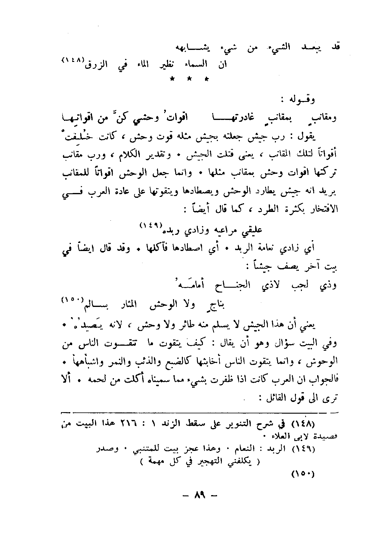 قتلت الجيش. وتقدير الكلام، ورب مقانب تركتها إنه جيش يطارد الوحش ويصطادها ويتقوتها على عادة العرب في الافتخار بكثرة الطرد، كما قال أيضاً: