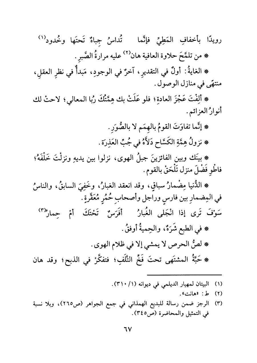 (¬٣) الرجز ضمن رسالة للبديع الهمذاني في جمع الجواهر (ص ٢٦٥)، وبلا نسبة في التمثيل والمحاضرة (ص ٣٤٥).