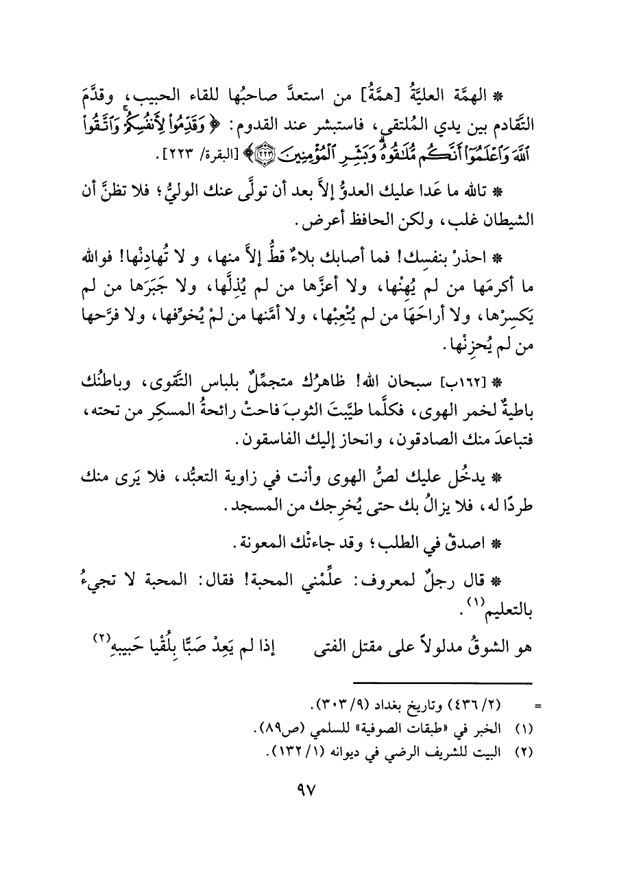 (¬١) الخبر في "طبقات الصوفية" للسلمي (ص ٨٩).