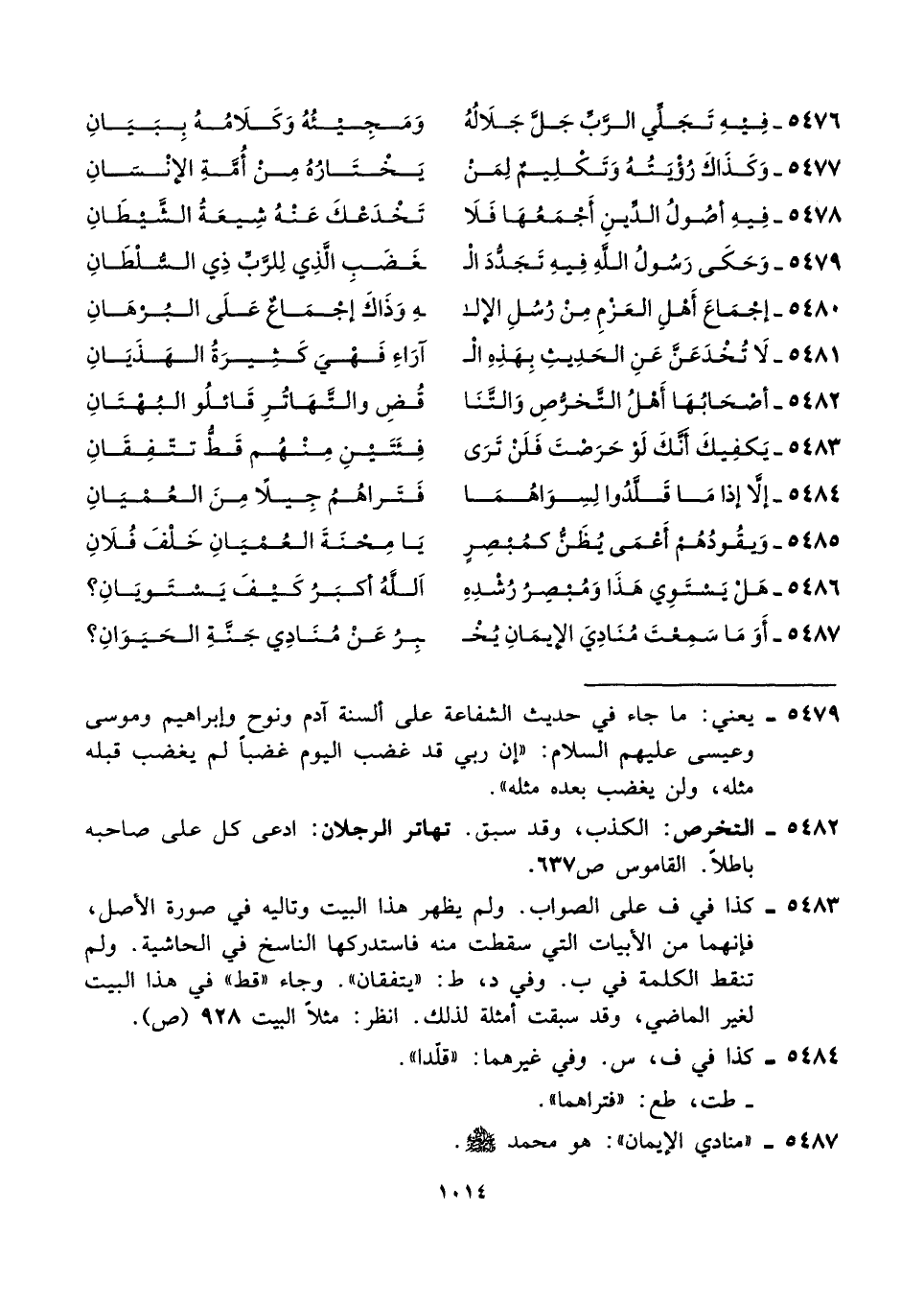 ٥٤٧٧ - وَكَذَاكَ رُؤْيَتُهُ وَتَكْلِيمٌ لِمَنْ ... يَخْتَارُهُ مِنْ أُمَّةِ الإنْسَانِ