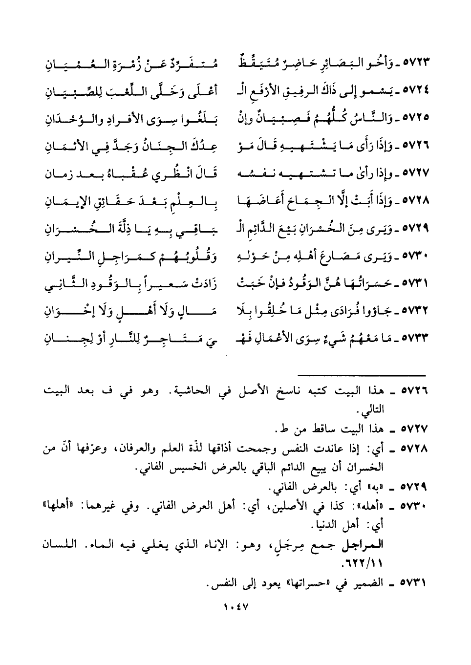 ٥٧٢٩ - وَيَرى مِنَ الخُسرَانِ بَيْعَ الدائِمِ الْـ ... ـبَاقِي بِهِ يَا ذِلَّةَ الخُسْرَانِ