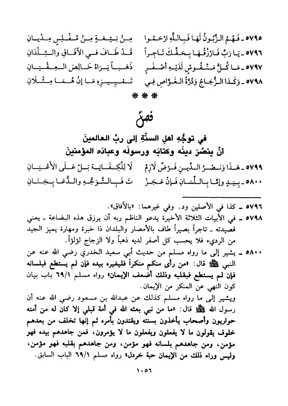 ٥٧٩٩ - هَذَا وَنصْرُ الدِّينِ فَرْضٌ لَازِمٌ ... لَا لِلْكِفَايَة بَلْ عَلَى الأَعْيَانِ