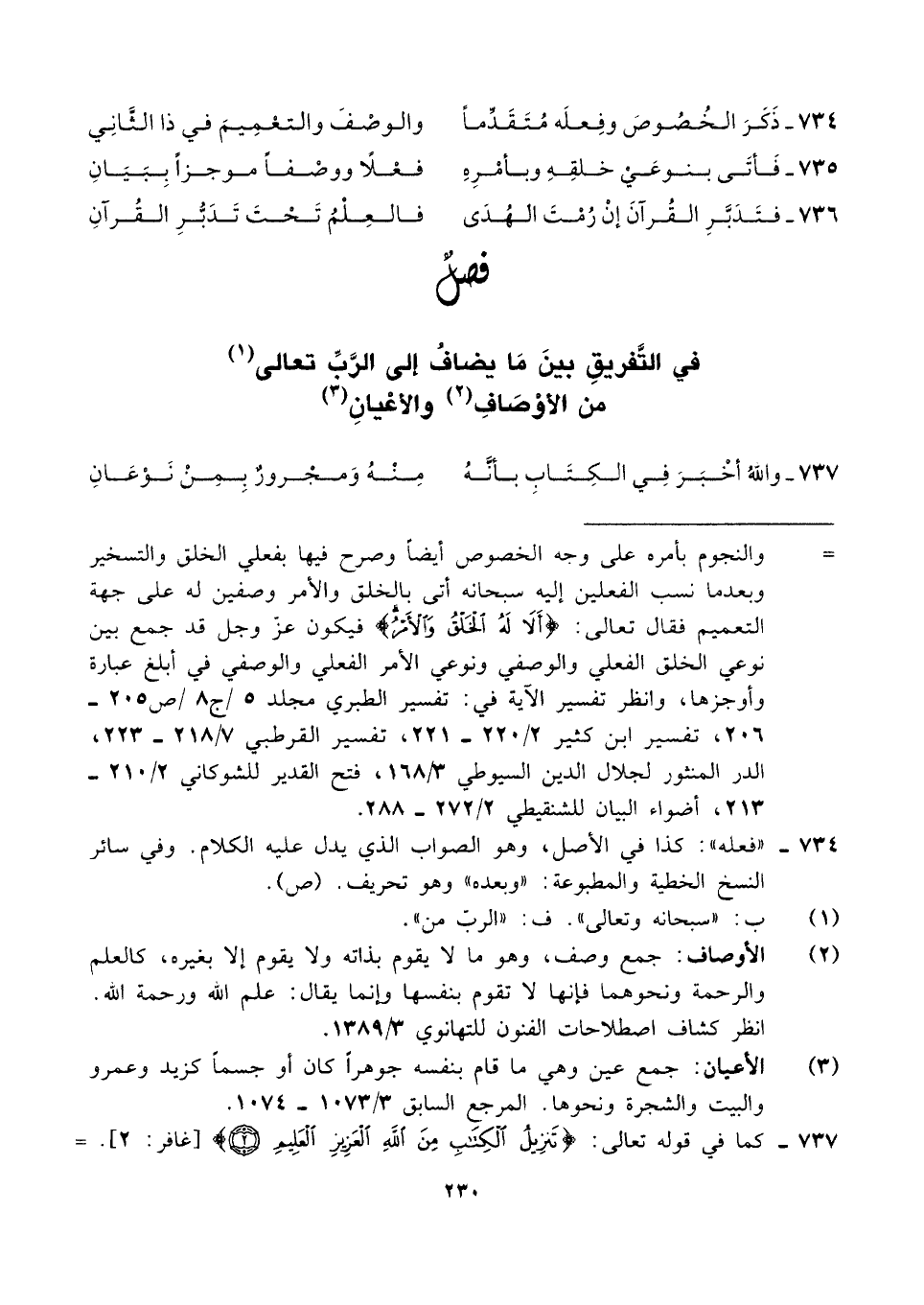 فصلٌ في التَّفريقِ بينَ مَا يضافُ إلى الرَّبِّ تعالى (¬١) من الأوْصَافِ (¬٢) والأعْيانِ (¬٣)