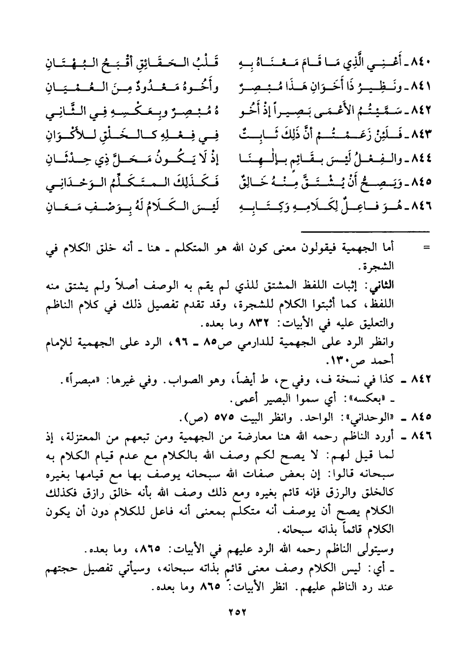 وسيتولى الناظم رحمه الله الرد عليهم في الأبيات: ٨٦٥، وما بعده.