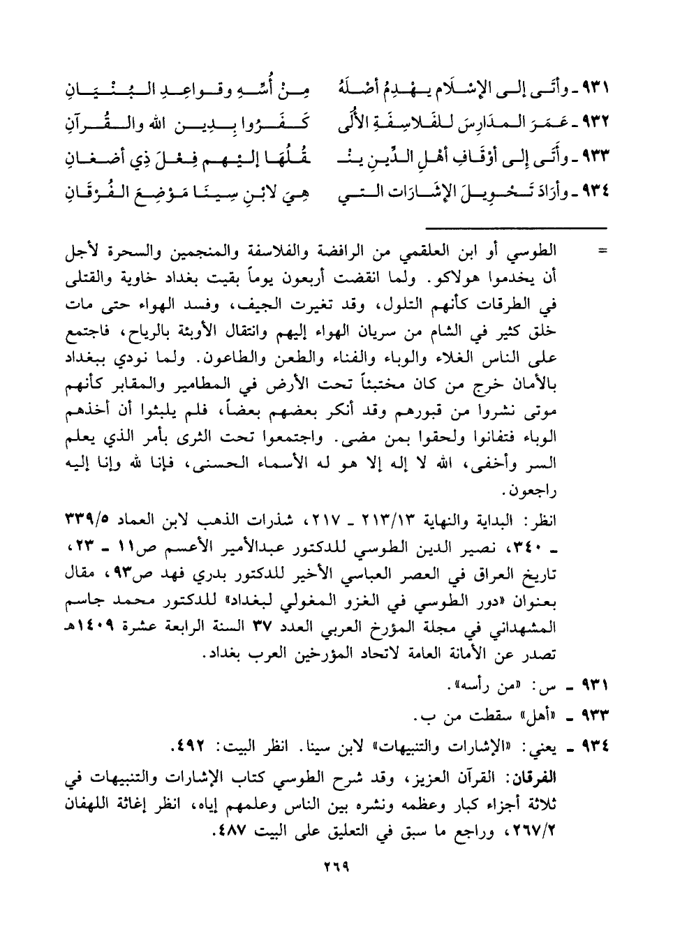 ٩٣٤ - وأرَادَ تَحْوِيلَ الإِشَارَات التي ... هِيَ لابْنِ سِينَا مَوْضِعَ الفُرْقَانِ