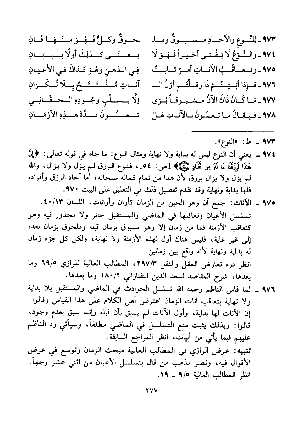 ٩٧٧ - مَا كَانَ ذَاكَ الآنُ مسْبوقًا يُرَى ... إلَّا بسلْبِ وجُودِهِ الحقّانِي