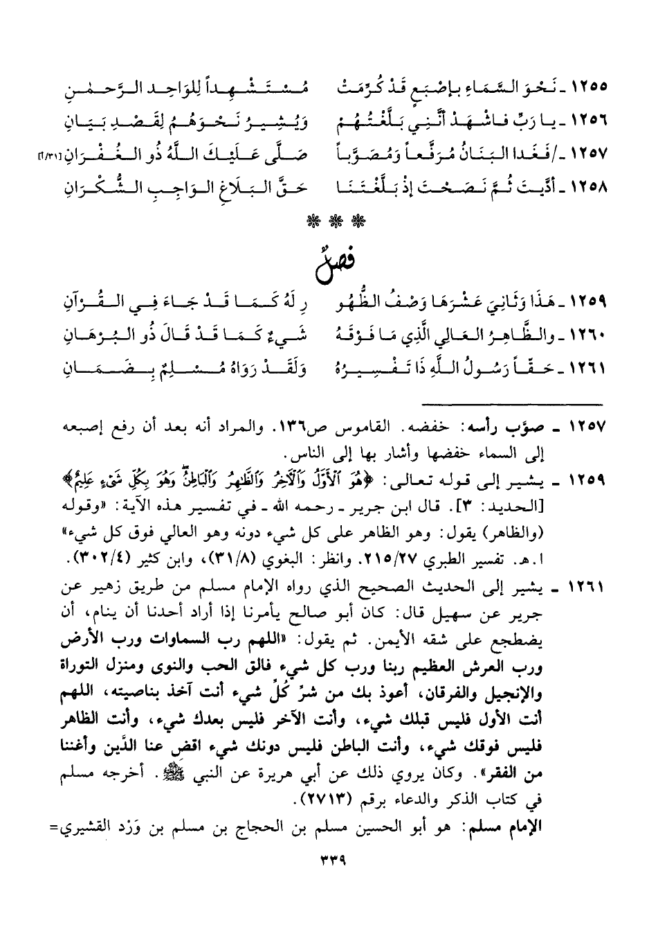 ١٢٥٦ - يا رَبِّ فاشْهَدْ أنَّنِي بَلَّغْتُهُمْ ... وَيُشِيرُ نَحْوَهُمُ لِقَصْدِ بَيَانِ