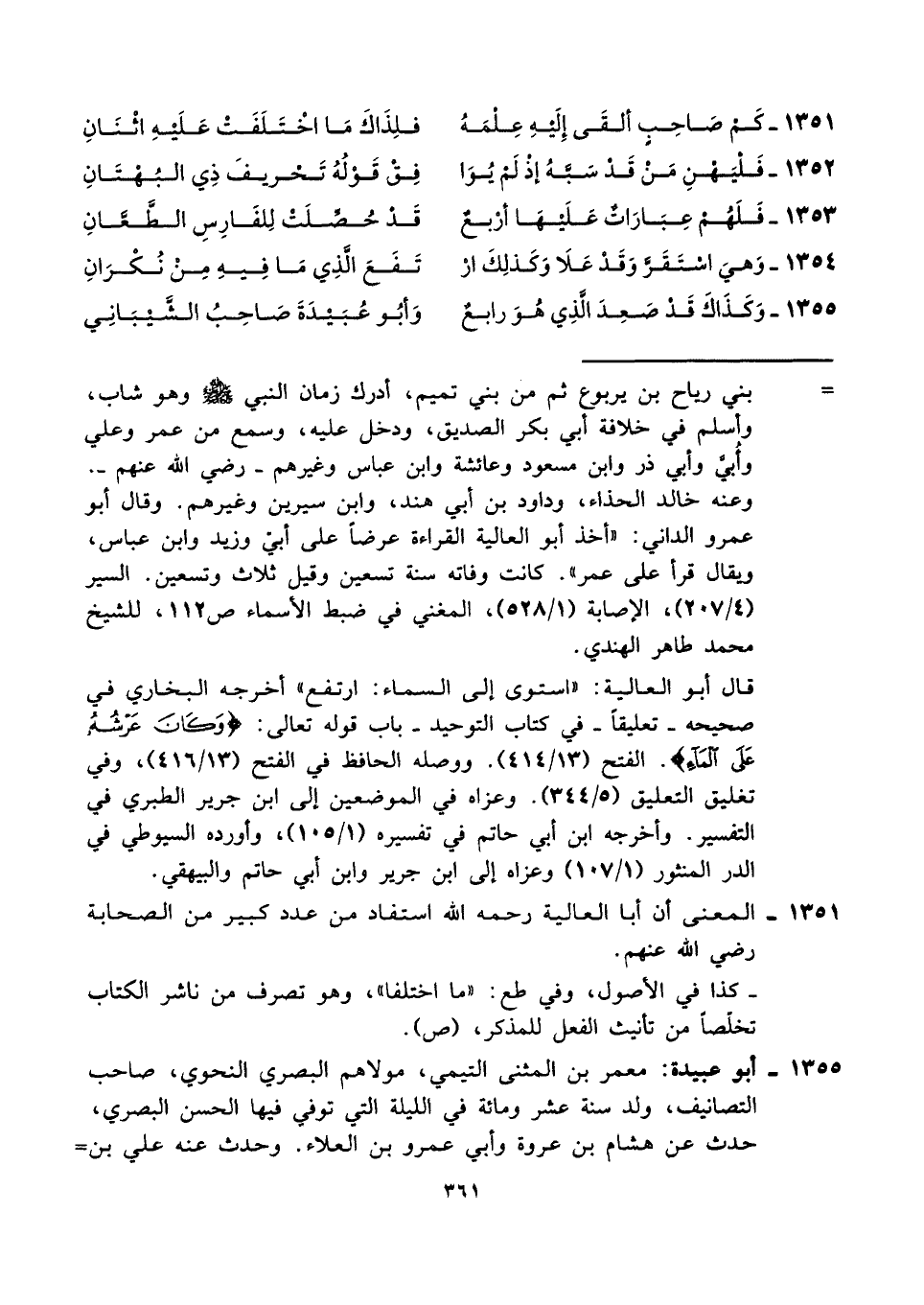 ١٣٥١ - المعنى أن أبا العالية رحمه الله استفاد من عدد كبير من الصحابة رضي الله عنهم.