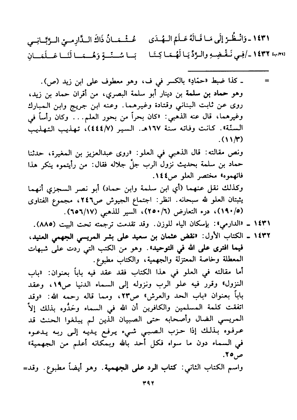 ١٤٣٢ - فِي نَقْضِهِ والرَّدِّ يَا لَهُمَا كِتَا ... بَا سُنّةٍ وَهُمَا لَنَا عَلَمَانِ