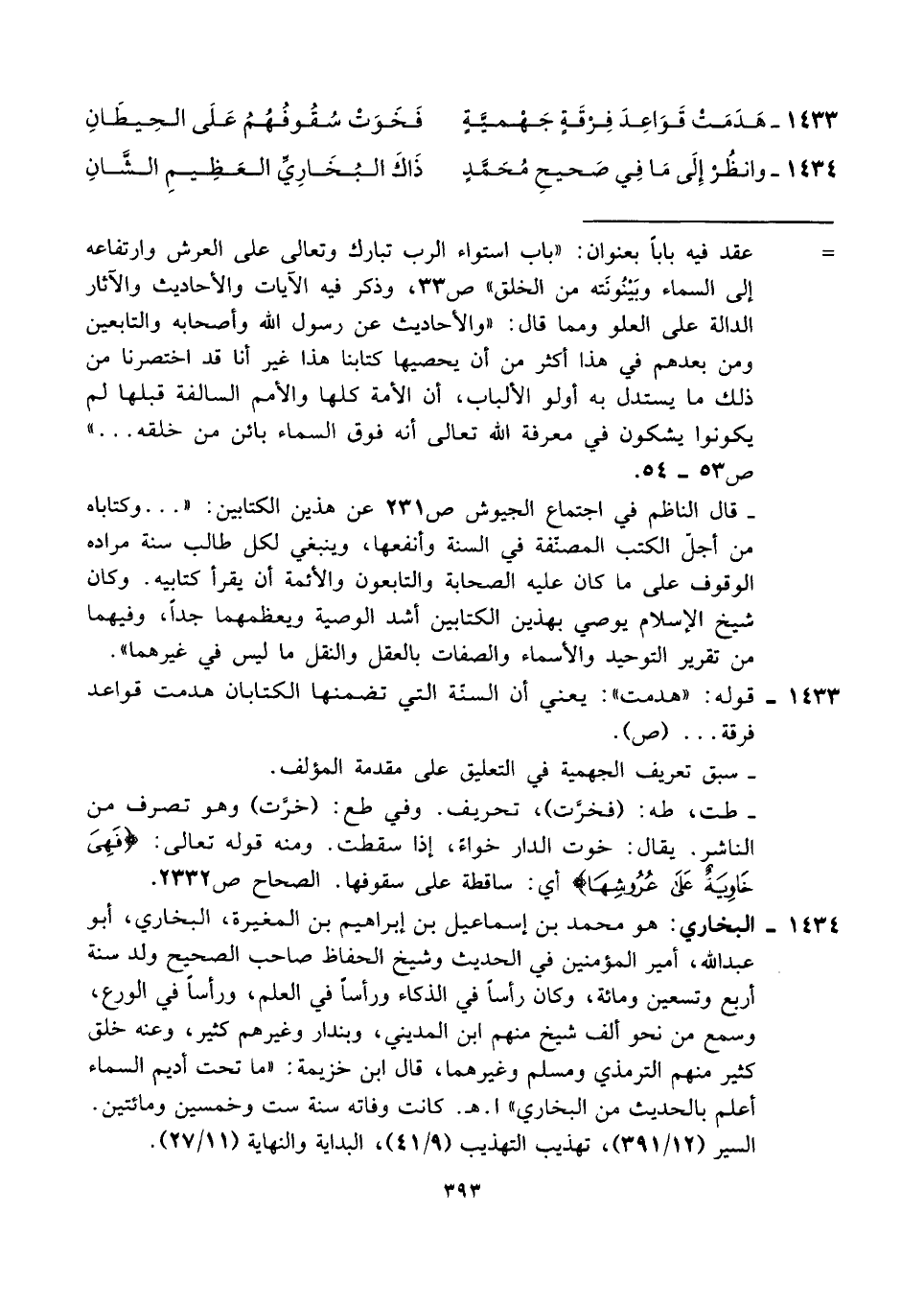 ١٤٣٤ - وانظُرْ إِلَى مَا فِي صَحيحِ مُحَمَّدٍ ... ذَاكَ البُخَارِيّ العَظِيمِ الشَّانِ