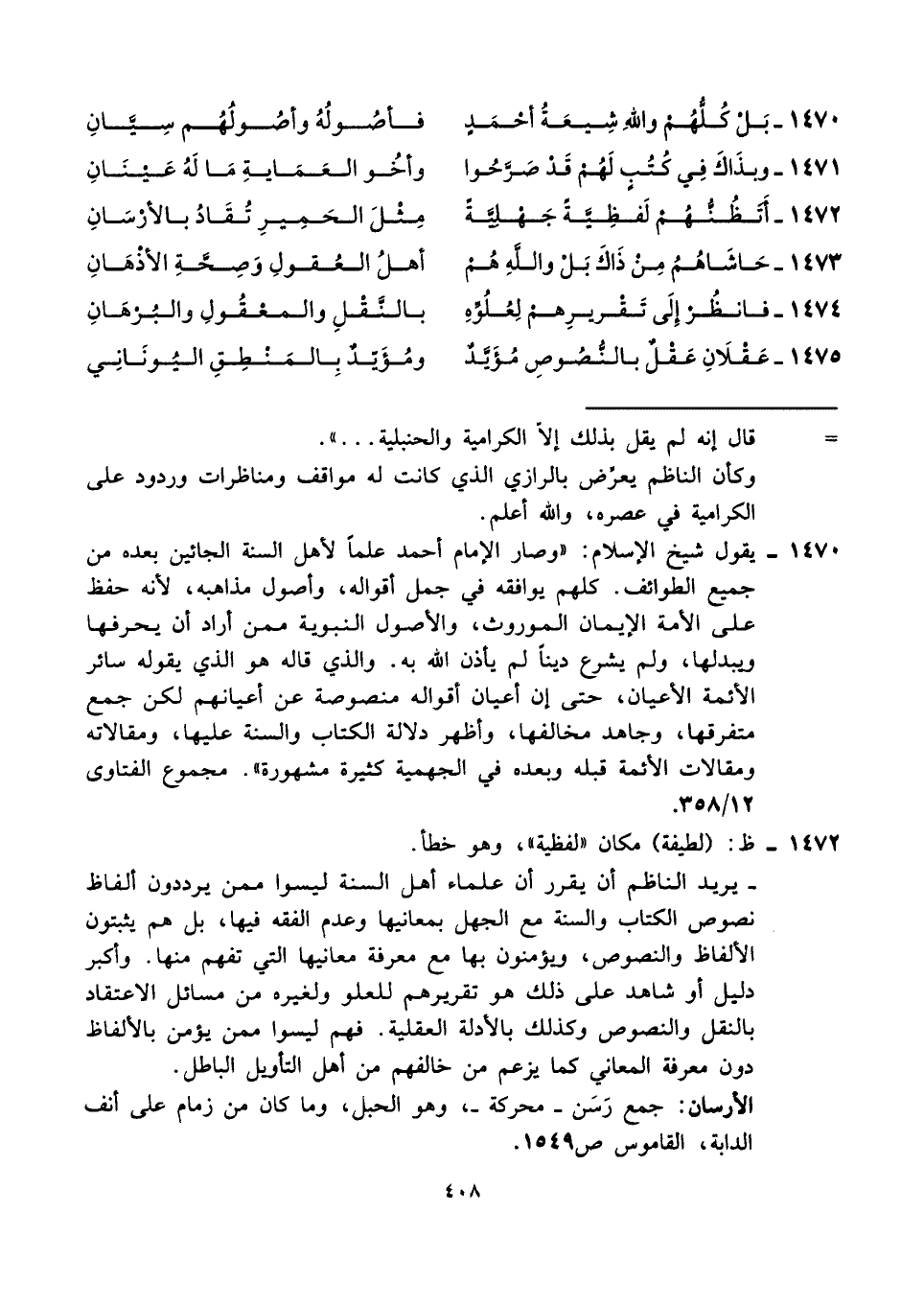 ١٤٧٢ - أتظُنُّهُم لَفظِيَّةً جَهليَّةً ... مِثْلَ الحَمِيرِ تُقَادُ بالأرْسَانِ