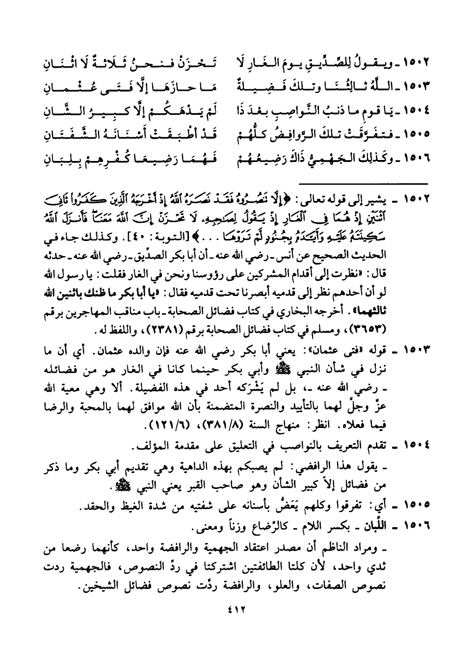 ١٥٠٢ - ويقولُ لِلصِّدِّيقِ يومَ الغَارِ لَا ... تَحْزَنْ فنحنُ ثَلَاثةٌ لَا اثْنَانِ