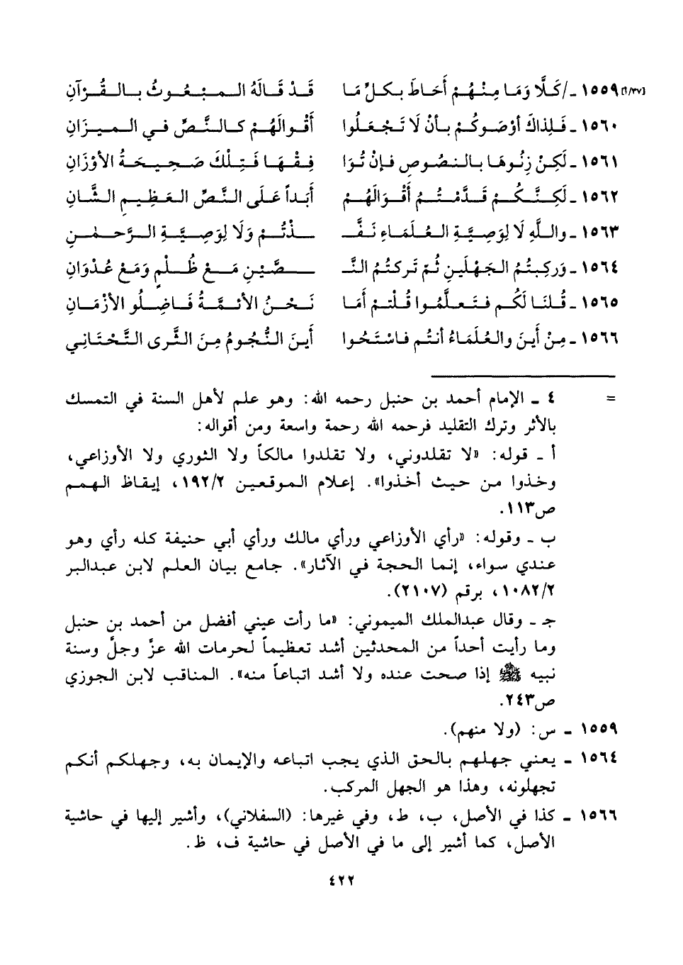١٥٦١ - لَكِنْ زِنُوهَا بالنصُوصِ فإنْ تُوَا ... فِقْهَا فَتِلْكَ صَحِيحَةُ الأوْزَانِ