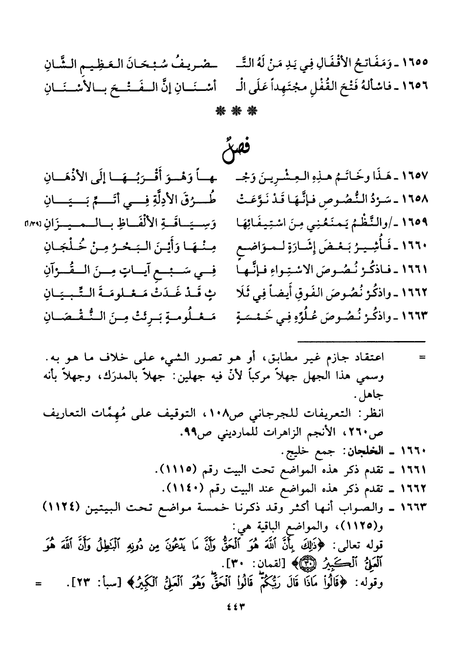 ١٦٥٨ - سَرْدُ النُّصُوصِ فإنَّهَا قَدْ نَوَّعَتْ ... طُرُقَ الأدِلَّةِ فِي أتَمِّ بَيَانِ