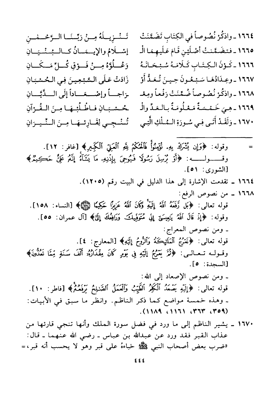١٦٦٤ - واذكُرْ نُصُوصًا في الكِتَابِ تَضَمَّنَتْ ... تَنْزِيلَهُ مِنْ رَبّنَا الرَّحْمنِ