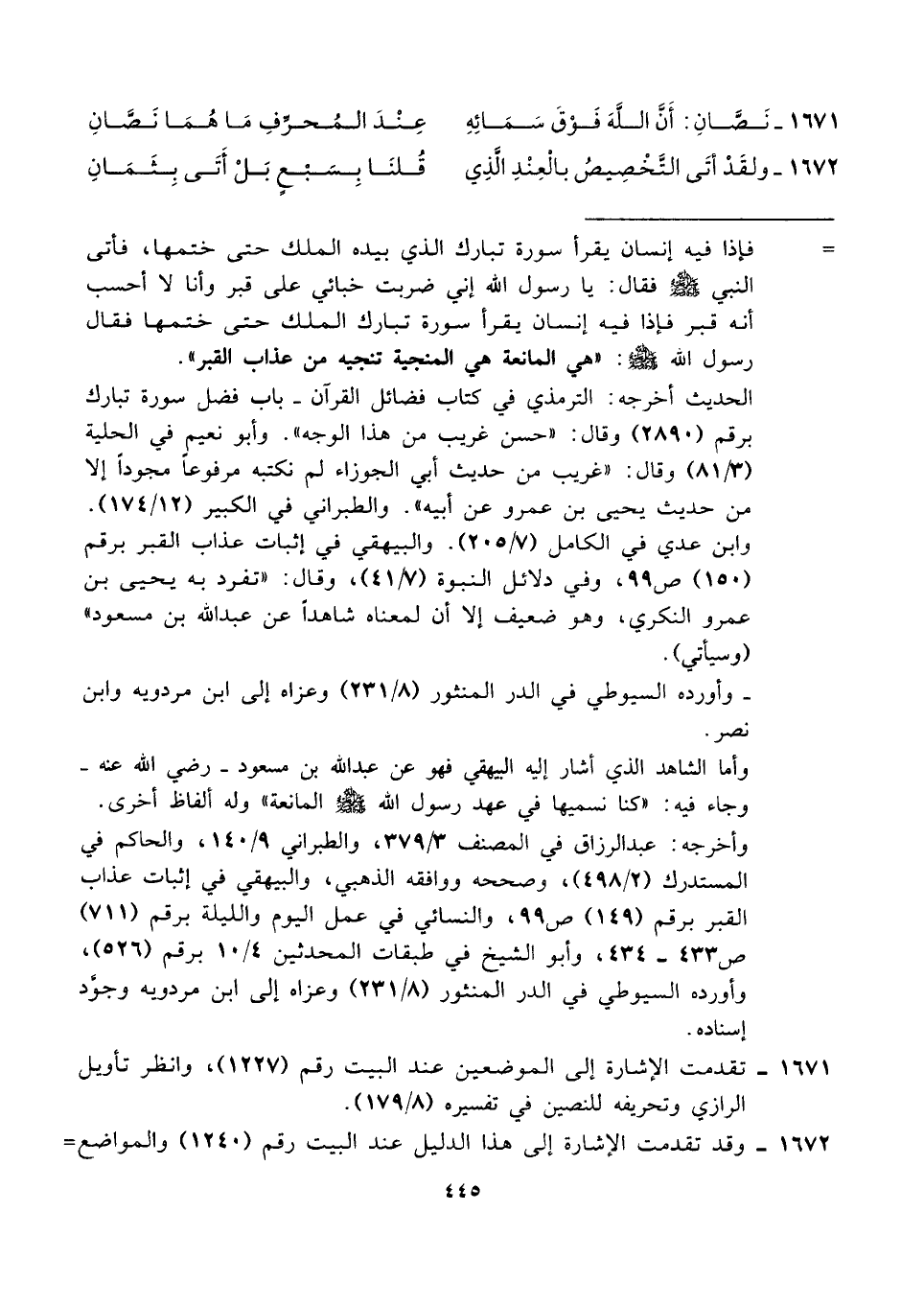 ١٦٧١ - نَصَّانِ: أَنَّ اللَّهَ فَوْقَ سَمَائِهِ ... عِنْدَ المُحرِّفِ مَا هُمَا نَصَّانِ
