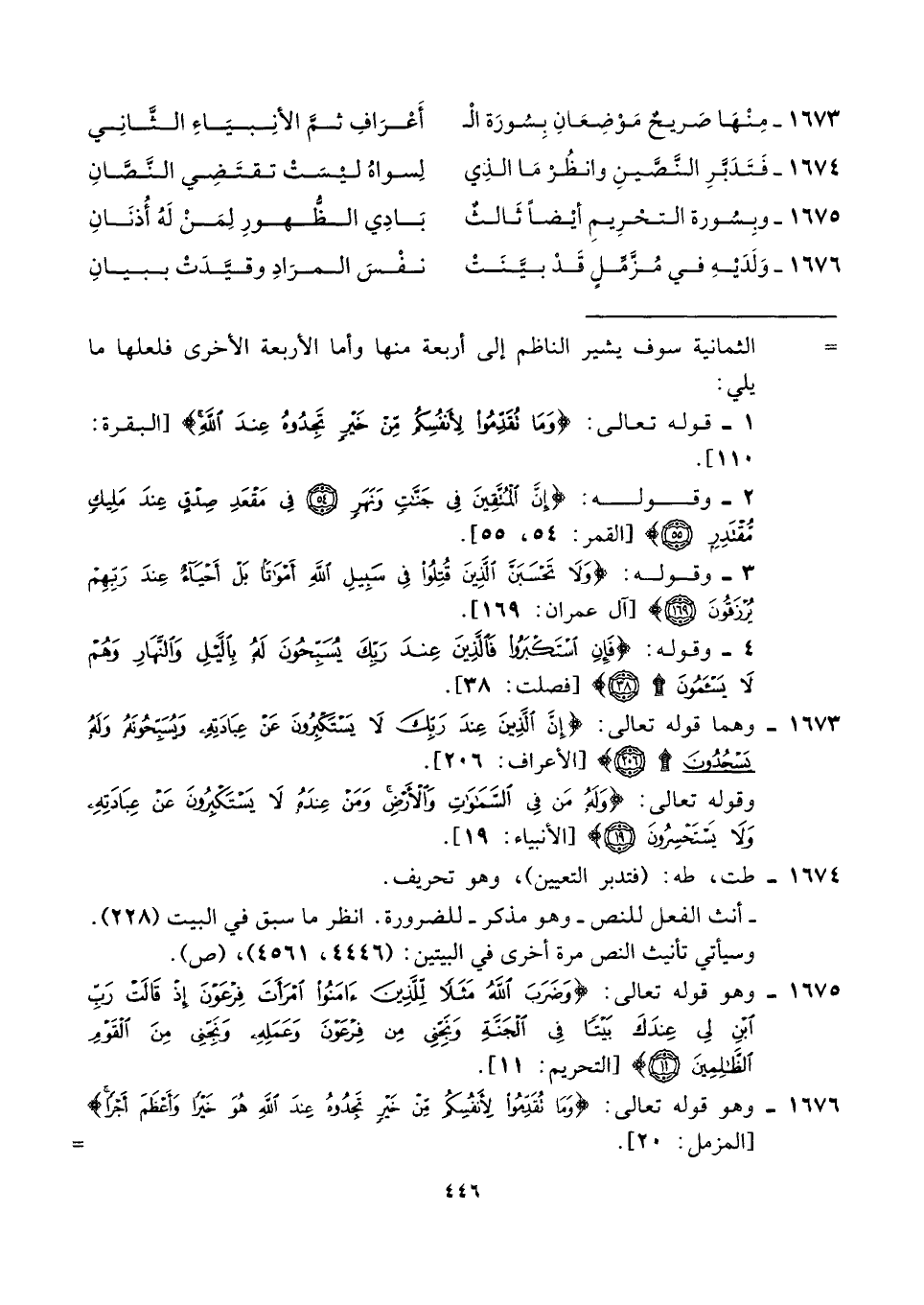 ١٦٧٣ - مِنْهَا صَريحٌ مَوْضعَانِ بِسُورَة الْـ ... أَعْرَافِ ثم الأنِبيَاءِ الثَّانِي