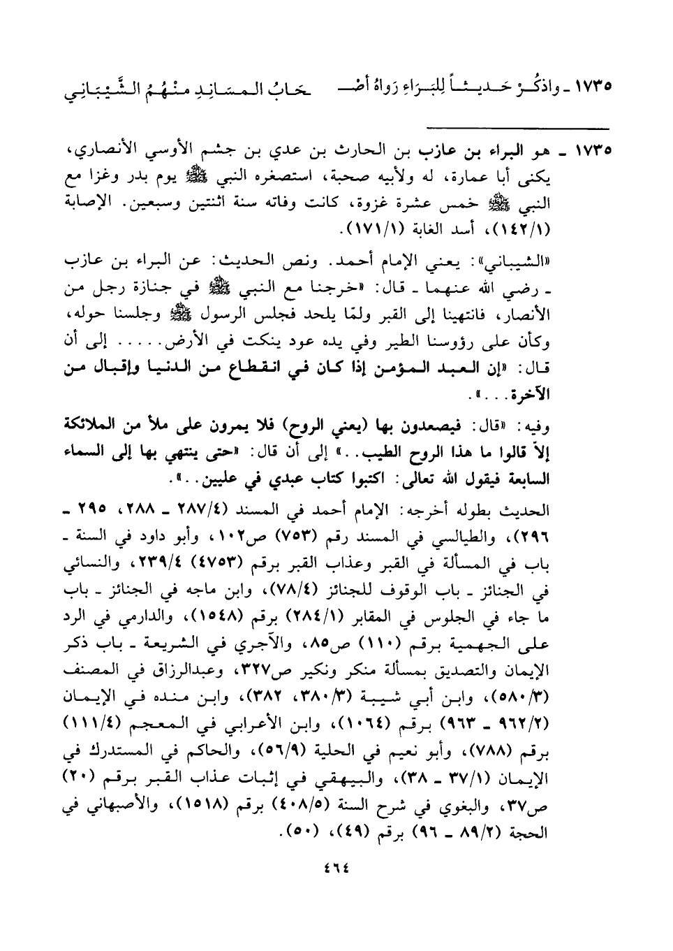 ١٧٣٥ - واذكُرْ حَديثًا لِلبَرَاءِ رَواهُ أصْـ ... ـحَابُ المسَانِدِ منْهُمُ الشَّيْبَانِي