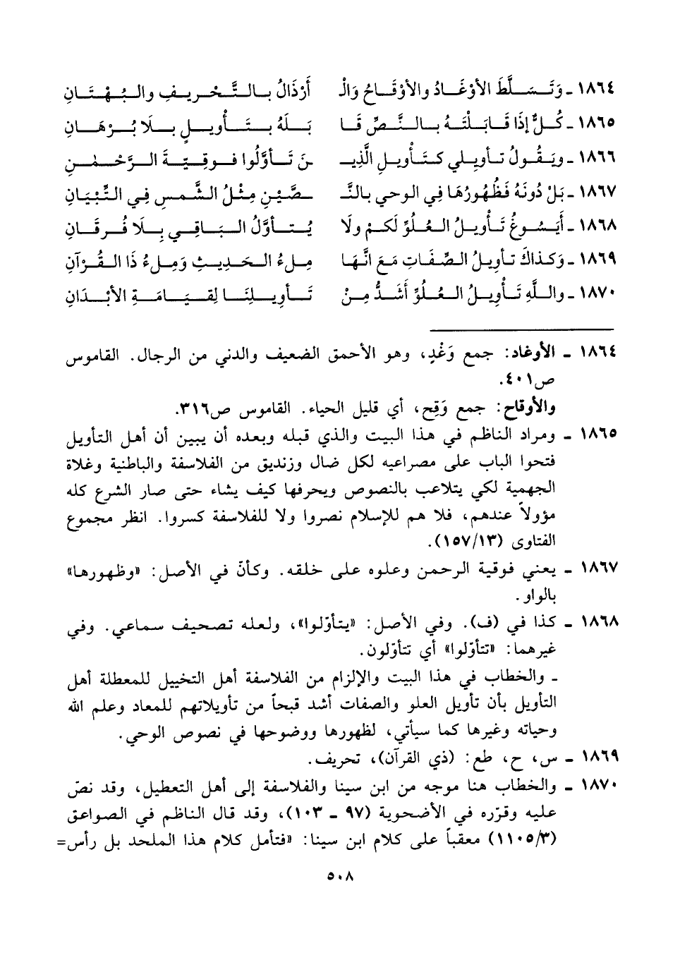 ١٨٦٨ - أَيَسُوغُ تَأْويلُ العُلُوِّ لَكم ولَا ... يُتأوَّلُ البَاقِي بِلَا فُرقَانِ