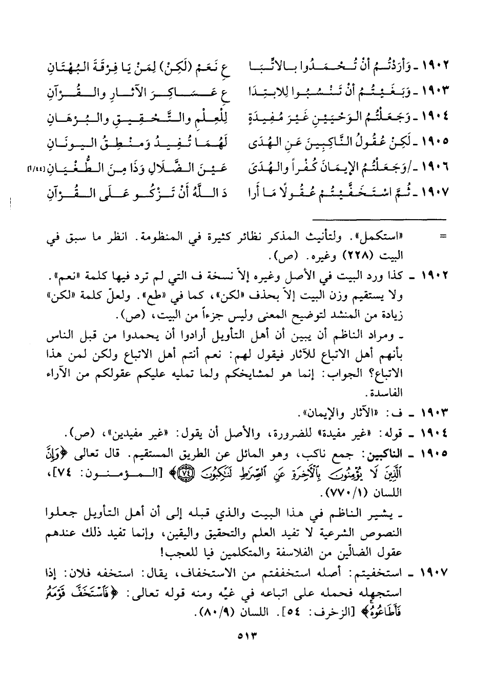 ١٩٠٤ - وَجَعَلْتُمُ الوَحْيَيْنِ غَيرَ مُفِيدَةٍ ... لِلْعِلْمِ والتَّحْقِيقِ والبُرْهَانِ