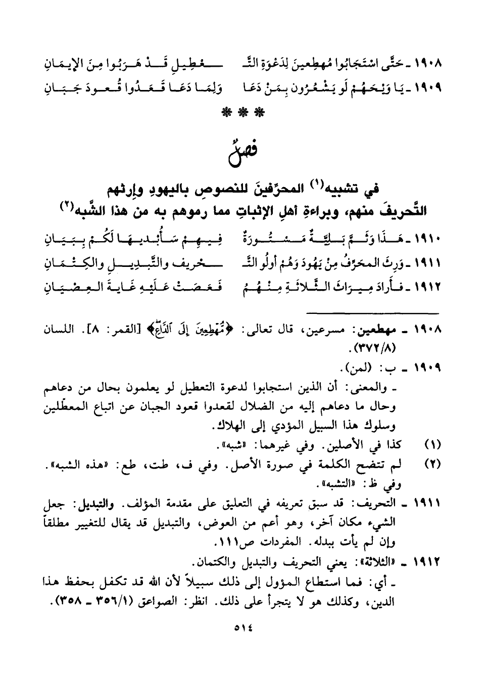 ١٩١١ - وَرِثَ المحَرِّفُ مِنْ يَهُودَ وَهُم أولُو التَّ ... ـحْريف والتَّبدِيلِ والكِتْمَانِ