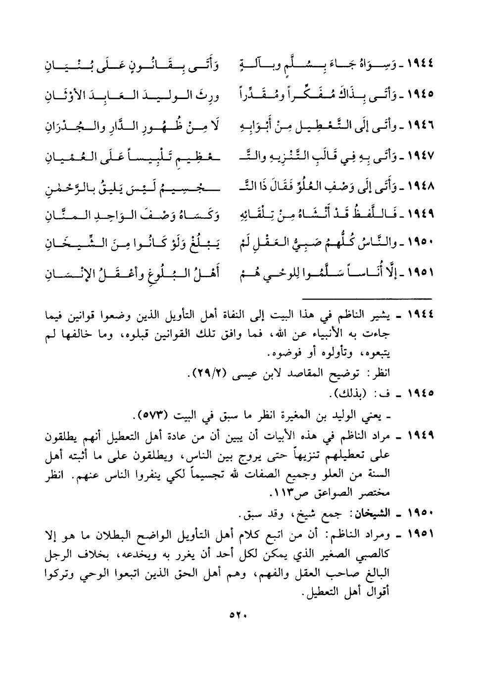 ١٩٥١ - إلا أُنَاسًا سَلَّمُوا لِلوحْي هُمْ ... أَهْلُ البُلُوغِ وأعْقَلُ الإنْسَانِ