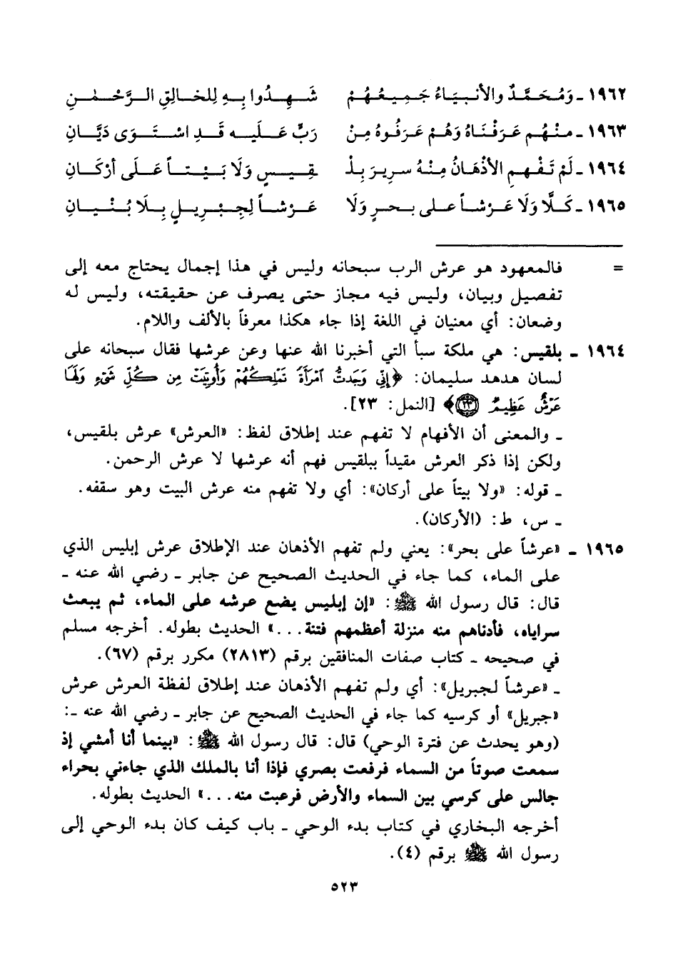 ١٩٦٥ - كَلَّا وَلَا عَرْشًا على بحرٍ وَلَا ... عَرْشًا لِجِبرِيلٍ بِلَا بُنْيانِ