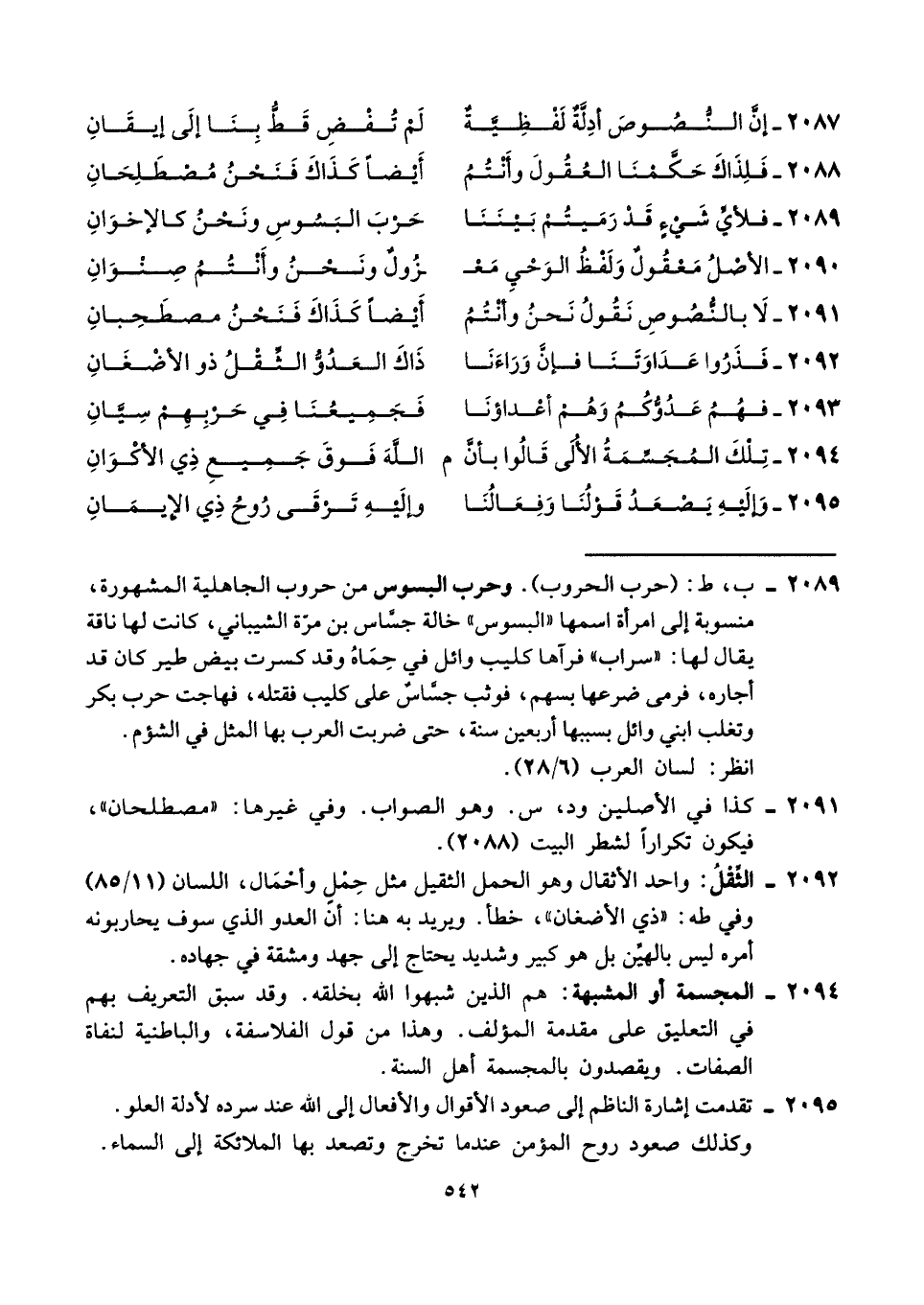 ٢٠٩٥ - وإلَيْهِ يَصْعَدُ قَوْلُنَا وَفِعَالُنَا ... وإليْهِ تَرقَى رُوحُ ذِي الإيمَانِ