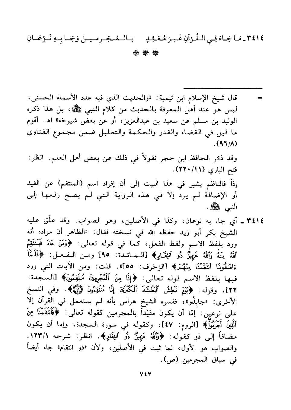 ٣٤١٤ - مَا جَاءَ فِي القُرْآنِ غَيرَ مُقيَّدٍ ... بالمُجْرِمينَ وَجَا بِهِ نَوْعَانِ