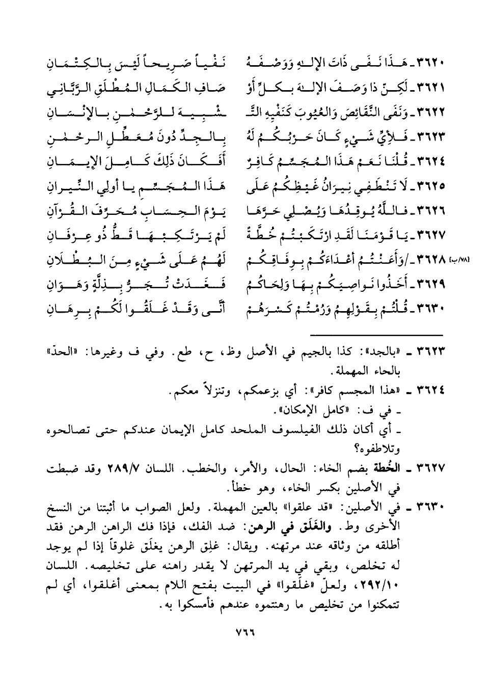 ٣٦٢١ - لَكِنّ ذا وَصَفَ الإلهَ بكلِّ أَوْ ... صَافِ الكَمَالِ المُطْلَقِ الرَّبَّانِي