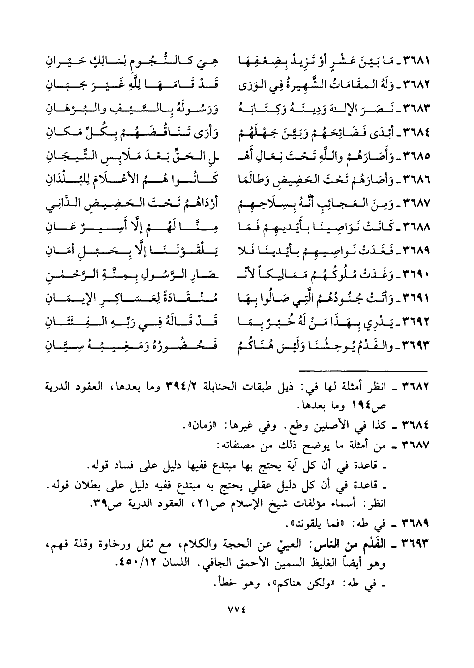 ٣٦٨١ - مَا بَيْنَ عَشْرٍ أوْ تَزِيدُ بِضِعْفِهَا ... هِيَ كالنُّجُومِ لِسَالِكٍ حَيْرانِ