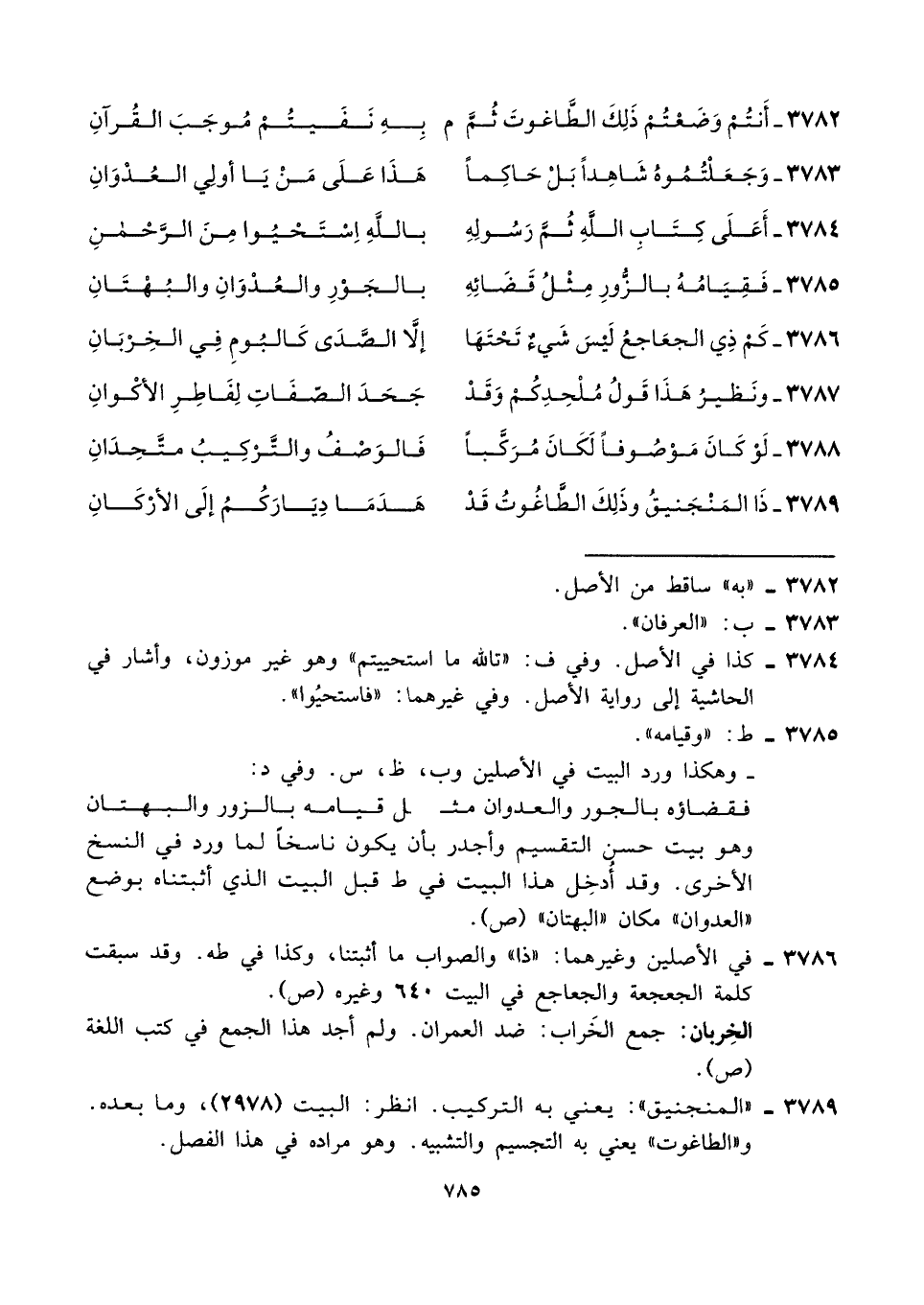 ٣٧٨٢ - أَنتُمْ وَضَعْتُمْ ذَلِكَ الطَّاغوتَ ثُمَّ ... بِهِ نَفَيتُمْ مُوجَبَ القُرْآنِ