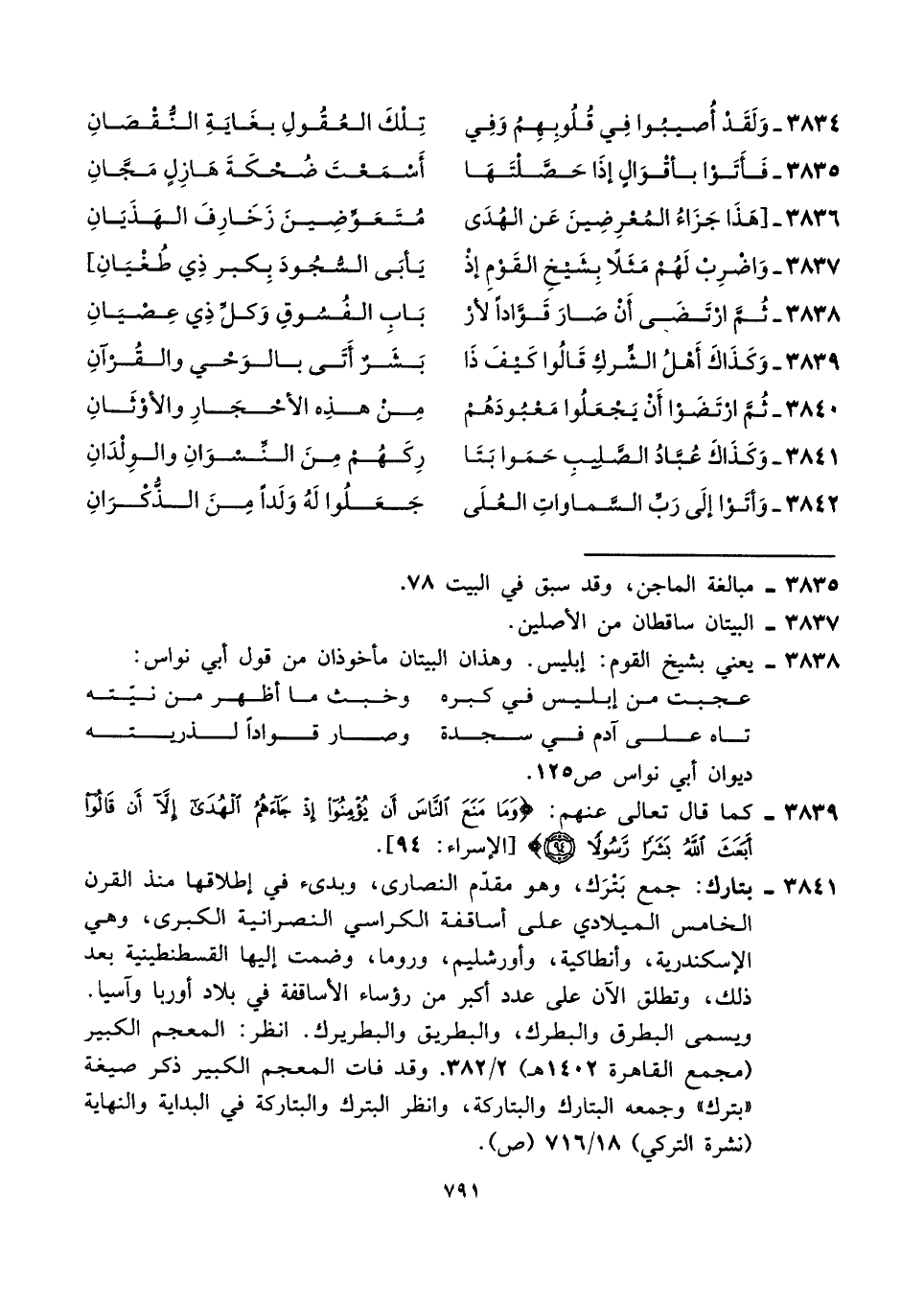 ٣٨٤١ - وَكَذَاكَ عُبَّادُ الصَّليبِ حَمَوا بَتَا ... رِكَهُم مِنَ النِّسْوَانِ والوِلْدَانِ