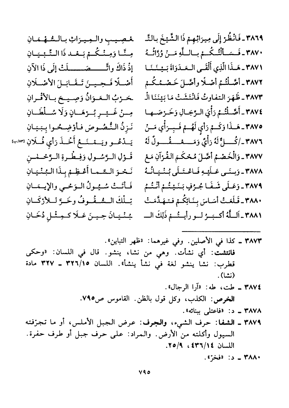 ٣٨٧٠ - فَسَألْتُكُم باللهِ مَنْ وُرَّاثُهُ ... مِنَّا وَمِنْكُم بَعْد ذَا التِّبْيَانِ
