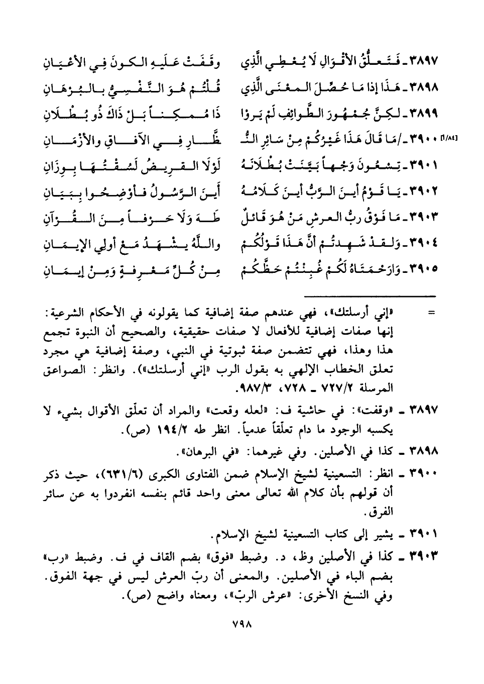 ٣٩٠١ - يشير إلى كتاب التسعينية لشيخ الإسلام.