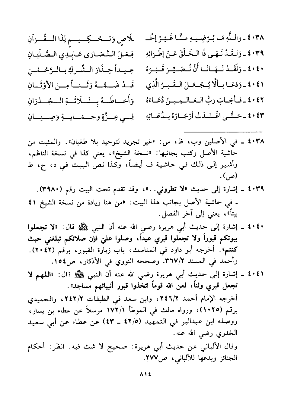 ٤٠٤٠ - وَلَقَدْ نَهَانَا أَنْ نُصَيِّرَ قَبْرَهُ ... عِيدًا حِذَارَ الشِّركِ بالرَّحْمنِ