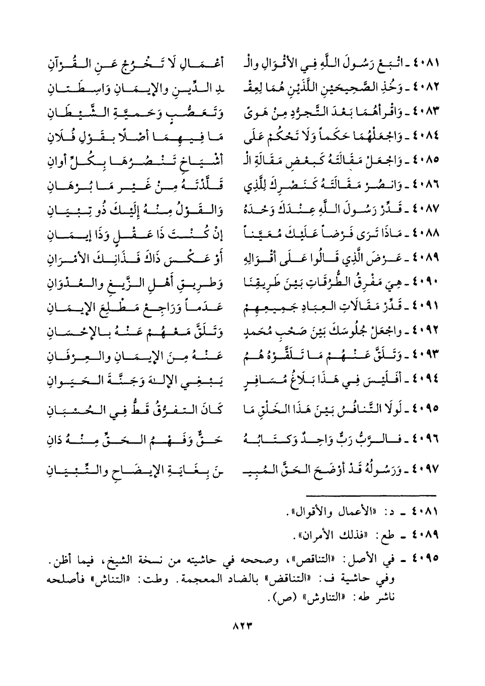 ٤٠٩٥ - في الأصل: "التناقص"، وصححه في حاشيته من نسخة الشيخ، فيما أظن. وفي حاشية ف: "التناقض" بالضاد المعجمة. وطت: "التناش" فأصلحه ناشر طه: "التناوش" (ص).