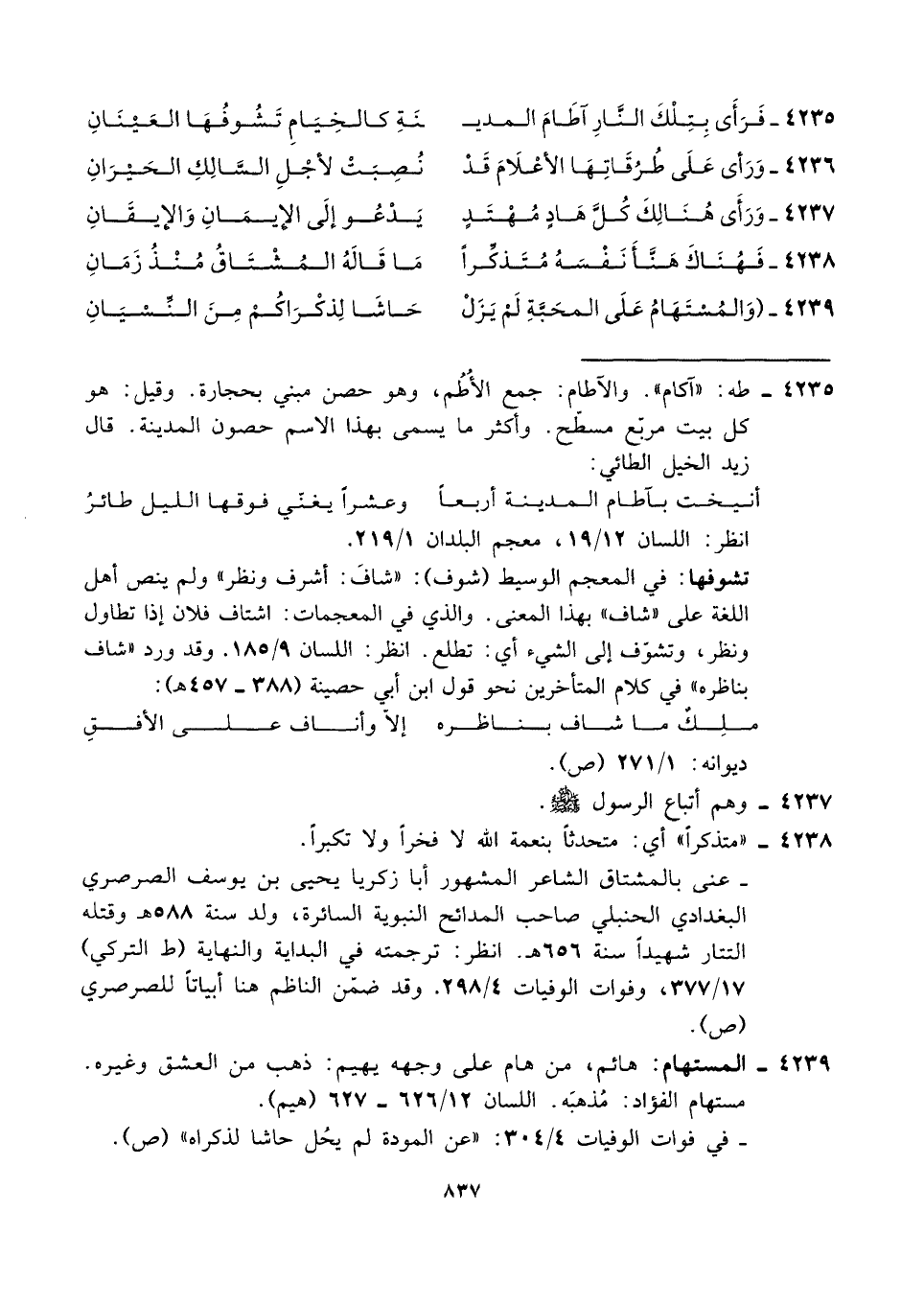 ٤٢٣٦ - وَرَأى عَلَى طُرُقَاتِهَا الأعْلَامَ قَدْ ... نُصِبَتْ لأجْلِ السَّالِكِ الحَيْرَانِ