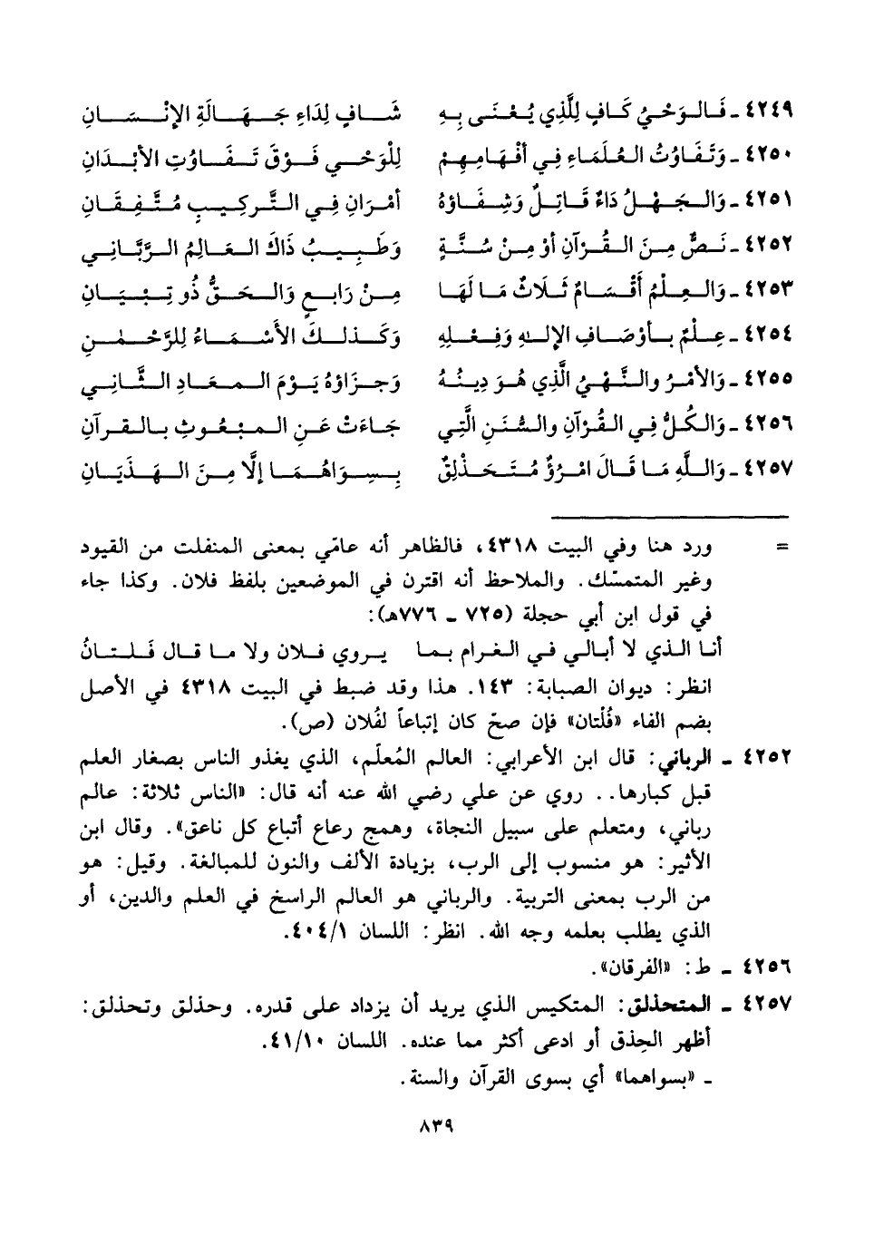 ٤٢٥١ - وَالجَهْلُ دَاءٌ قَاتِلٌ وَشِفَاؤهُ ... أمْرَانِ فِي التَّركِيبِ مُتَّفِقَانِ