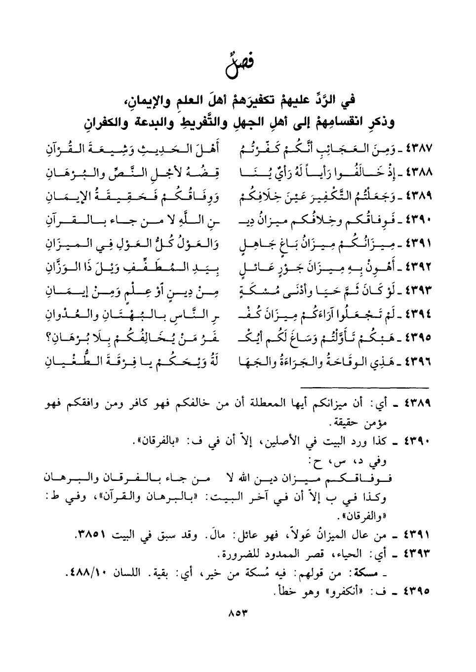 ٤٣٨٩ - وَجَعَلْتُمُ التَّكْفِيرَ عَيْنَ خِلَافِكُمْ ... وَوِفَاقُكُمْ فَحَقِيقَةُ الإيمَانِ