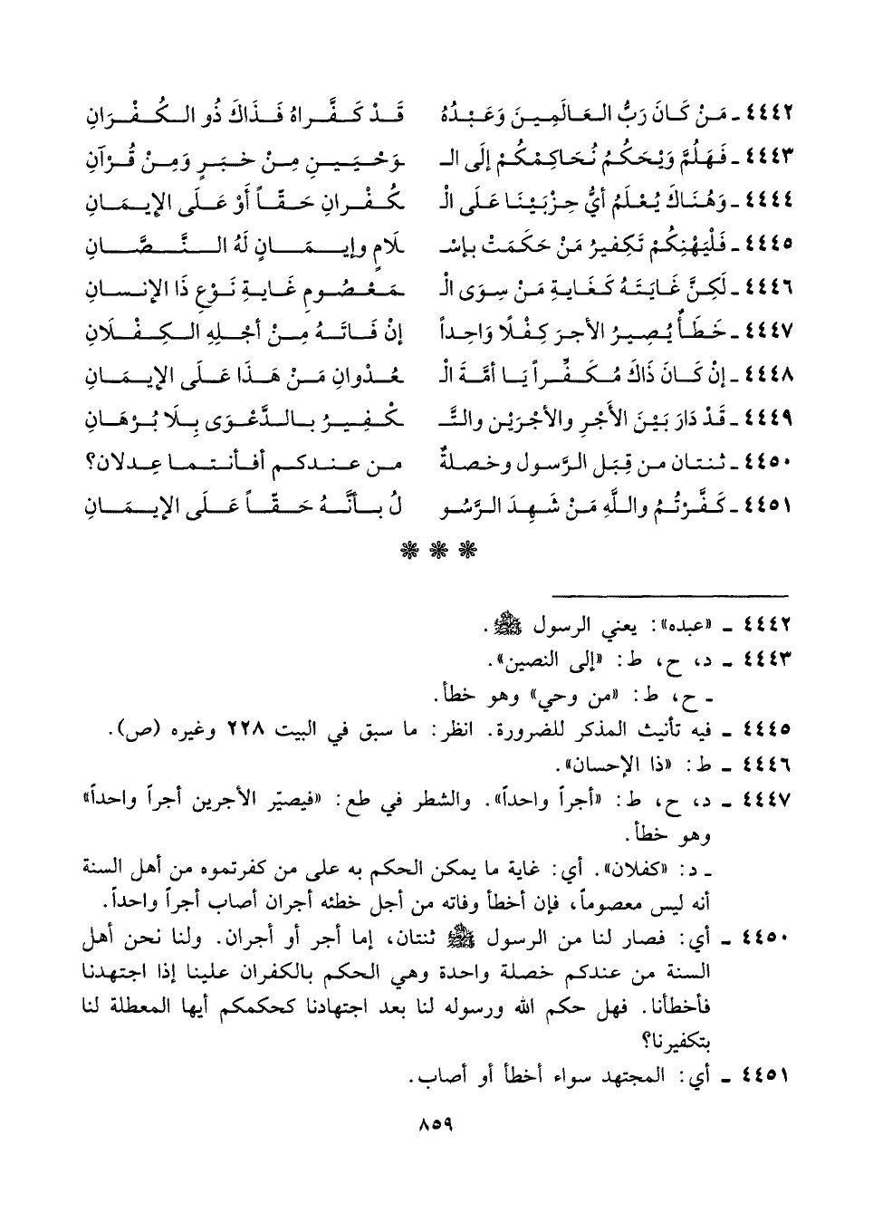 ٤٤٤٩ - قَدْ دَارَ بَيْنَ الأَجْرِ والأجْرَيْن والتَّـ ... ـكْفِيرُ بالدَّعْوَى بِلَا بُرْهَانِ