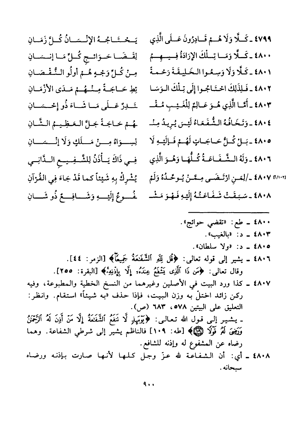 ٤٨٠٥ - بَلْ كُلُّ حَاجَاتٍ لَهُمْ فَإلَيْهِ لَا ... لِسِوَاهُ مِنْ مَلَكٍ وَلَا إنْسَانِ